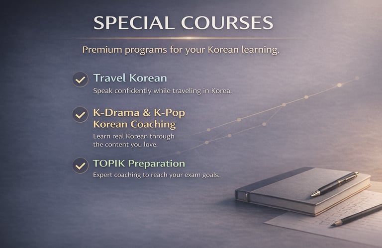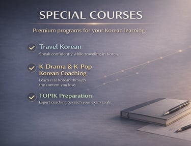 Understand how Koreans actually speak,when to sound casual or polite,and turn what you watch and listen to into confident, real-life Korean speaking.